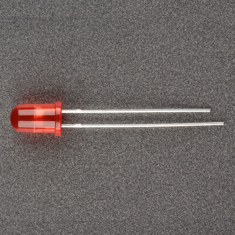 Поставка под заказ от 5000 шт. Выводной круглый светодиод, d=5 мм, диффузная красная линза. Цвет свечения красный (625-630 нм). Угол излучения 45°. Сила света Iv=1000-1200 мкд при If=20 мА. VF=1.8-2.3 В. Рекомендуемый постоянный рабочий максимальный ток 16-17 мА.
