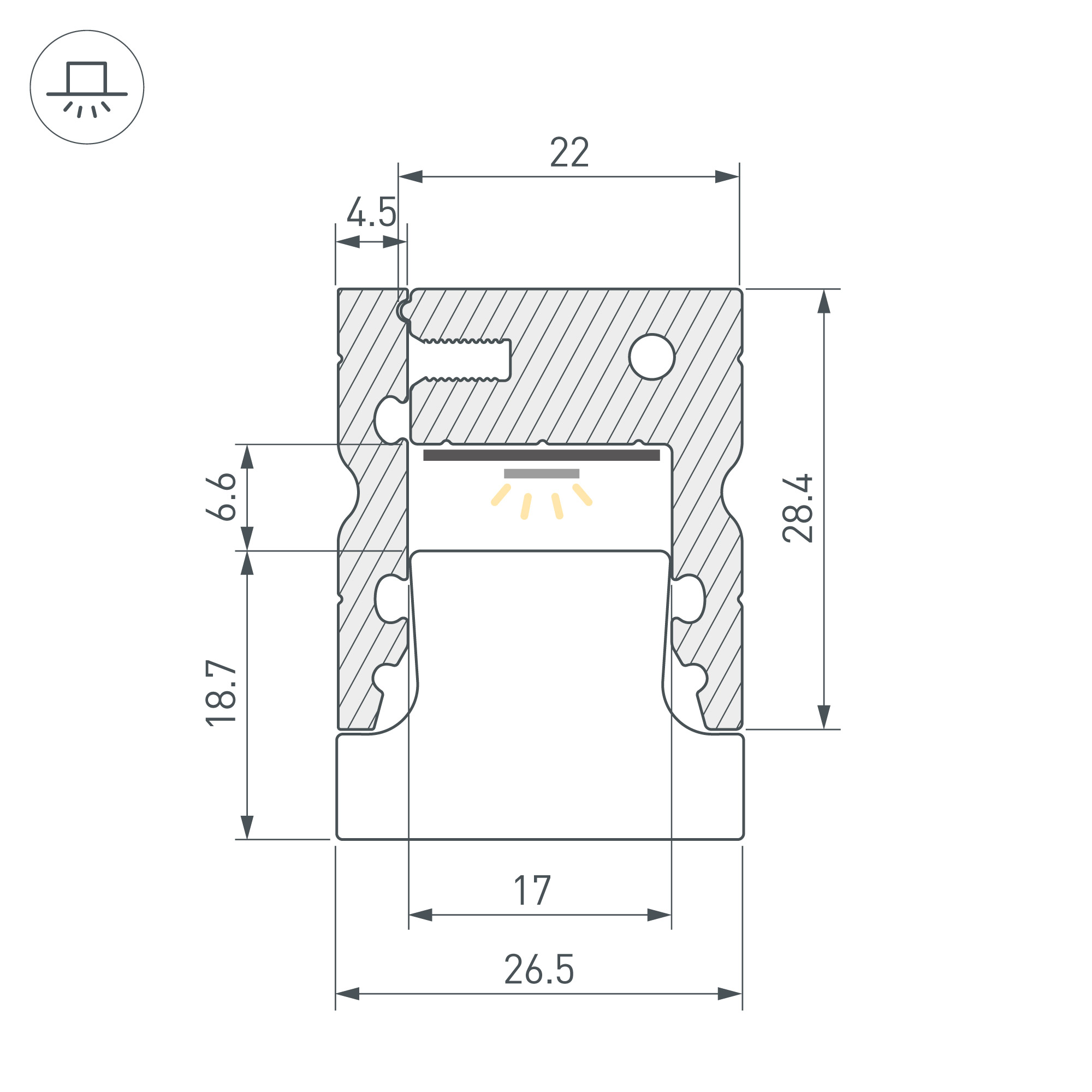 Алюминиевый анодированный двухкомпонентный профиль. Высокопрочный алюминий. Герметизация до IP67 (при соблюдении технологии герметизации). Габаритные размеры (L×W×H): 2000x26,5x28,4 мм. Ширина площадки для ленты 17мм. В комплекте силиконовая уплотнительная резинка - 7м и шурупы. Заглушки и другие аксессуары приобретаются отдельно. Цена за 1 метр.