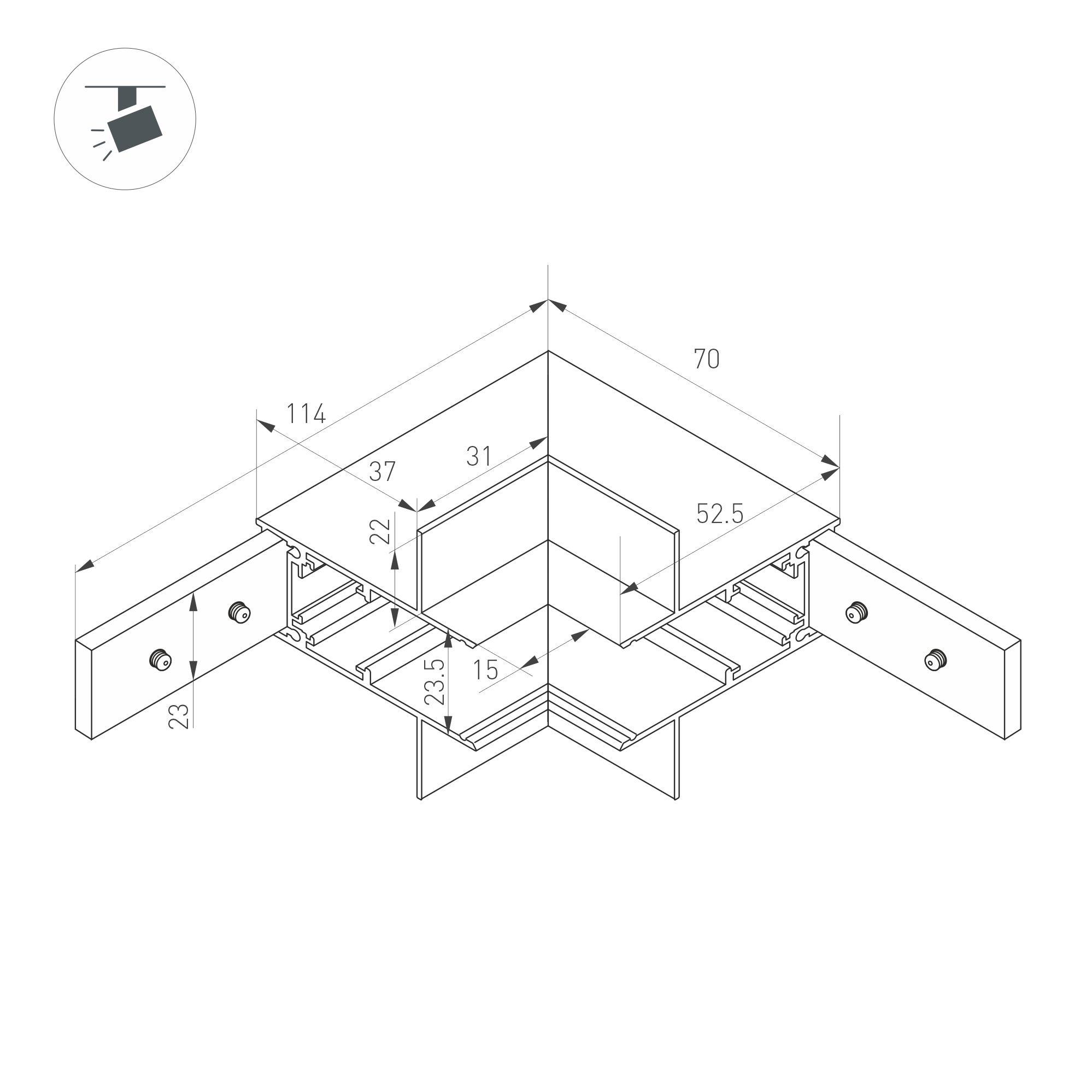 Угловой коннектор MAG-ORIENT-CON-2653-FDW-L90-INT для встраиваемого трека MAG-ORIENT-2653 позволяет выполнить внутреннее соединение треков под углом. Материал алюминий, цвет черный. Аксессуары для электрического соединения с треком приобретаются отдельно. Соединение треков между плоскостями.
