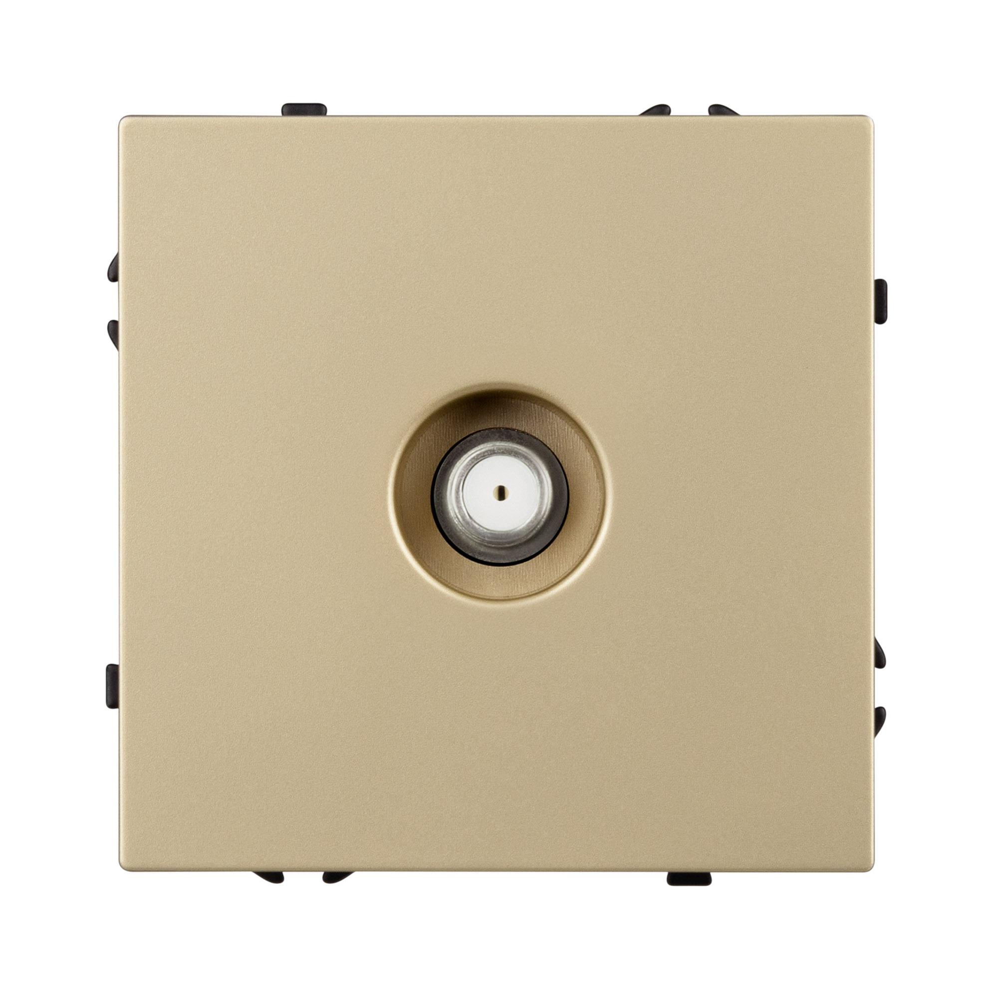 Строгие геометрические линии гармонично сочетаются с функциональностью продуманных механизмов, создавая идеальное решение для дизайн-проектов, где важны как эстетика, так и практичность. Механизм спутниковой розетки совместим с рамками серии NOBE, создает утонченный минималистичный вид. Скрытый тип монтажа позволяет гармонично встроить в интерьер любого современного дизайн-проекта. Видимая часть выполнена из высококачественного пластика цвета золотой песок и имеет Soft-Touch покрытие, что придает изделию приятные тактильные ощущения и стильный внешний вид. Механизм спутниковой розетки предназначена для подключения спутникового телевидения, путем подсоединения коаксиального кабеля к винтовому зажиму. Усиленные распорные лапки двойного захвата надежно фиксируют устройство в установочном подрозетнике круглого сечения диаметром 60мм. Суппорт окрашен в черный матовый цвет и выполнен из металла толщиной 1,5мм, что обеспечивает безопасность и уверенность в установке. На каждой стороне суппорта размещены фиксирующие элементы, позволяющие комбинировать механизмы в системы до 5шт как горизонтально, так и вертикально.
