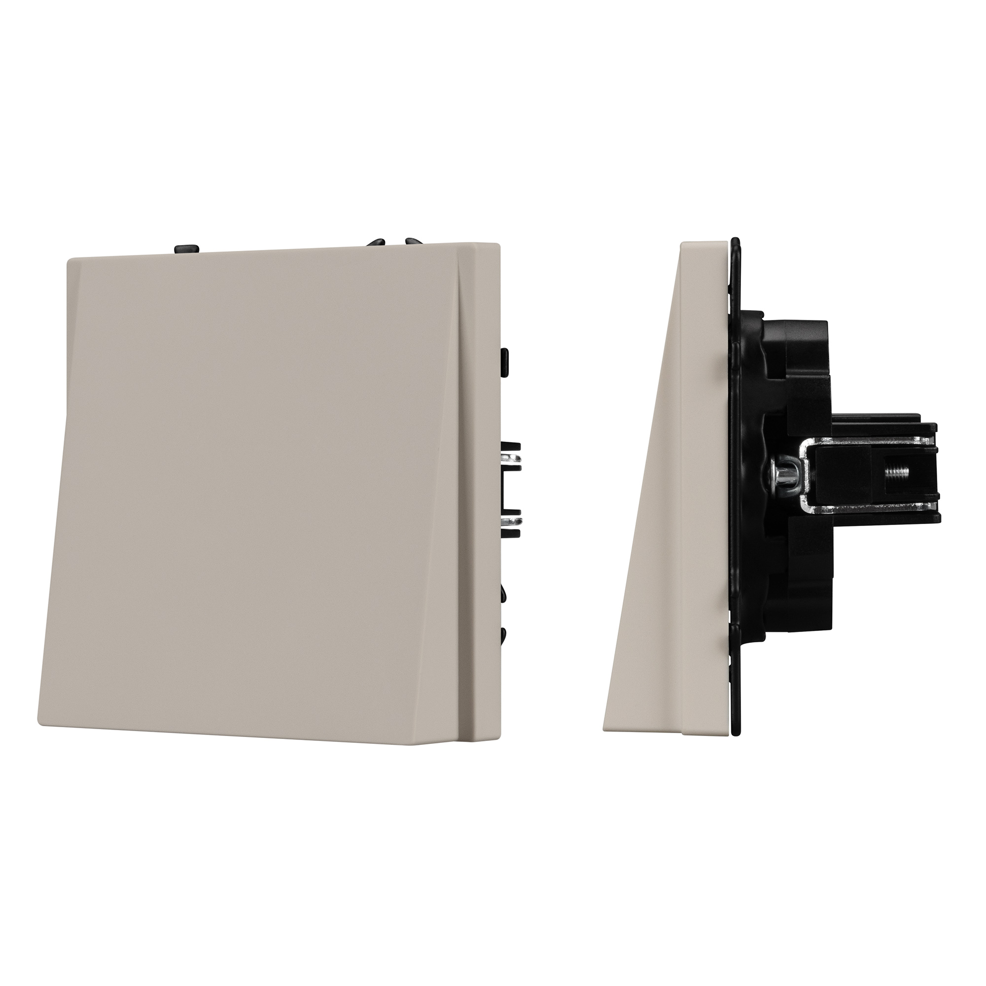 Строгие геометрические линии гармонично сочетаются с функциональностью продуманных механизмов, создавая идеальное решение для дизайн-проектов, где важны как эстетика, так и практичность. Механизм вывода кабеля совместим с рамками серии NOBE, создает утонченный минималистичный вид. Скрытый тип монтажа позволяет гармонично встроить в интерьер любого современного дизайн-проекта. Видимая часть механизма выполнена из высококачественного пластика цвета кашемир и имеет Soft-Touch покрытие, что придает изделию приятные тактильные ощущения и стильный внешний вид. Выводной кабель фиксируется винтовым зажимом, расположенным на тыльной стороне механизма. А усиленные распорные лапки двойного захвата надежно фиксируют механизм в установочном подрозетнике круглого сечения диаметром 60мм. Суппорт окрашен в черный матовый цвет под основу механизма и выполнен из металла толщиной 1,5мм, что обеспечивает безопасность и уверенность в установке. На каждой стороне суппорта размещены фиксирующие элементы, позволяющие комбинировать механизмы в системы до 5шт как горизонтально, так и вертикально.