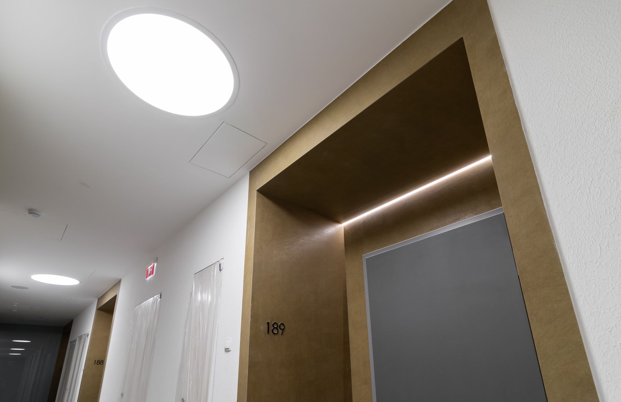 Разные световые приемы удалось гармонично объединить в общую концепцию освещения. Из дугового профиля ARC сделаны стильные дизайнерские светильники с высоким индексом цветопередачи. Классические алюминиевые профили стали основной для встроенных линий света, которые обеспечили хорошее основное освещение без слепящего эффекта.
